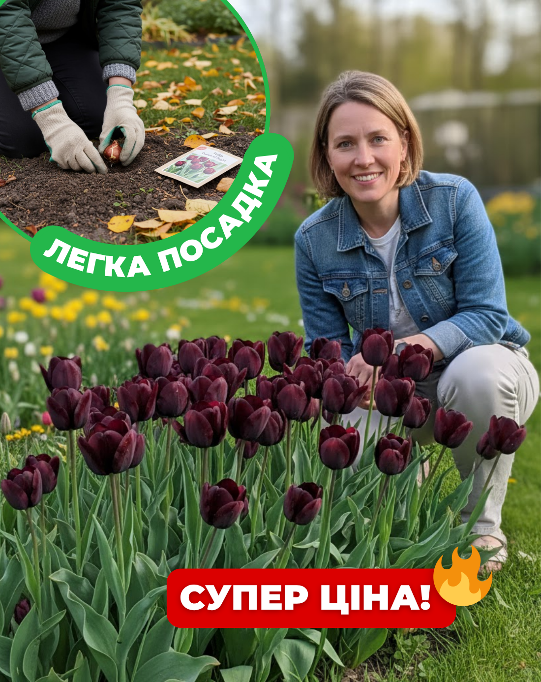 Весняна посадка дозволяє контролювати умови росту з перших днів: достатньо сонця, пухкий ґрунт і помірний полив — і рослини активно розвиваються. Тюльпани Queen of Night формують елегантні темні бутони з глибоким, насиченим відтінком, які виглядають особливо ефектно на тлі свіжої весняної зелені.