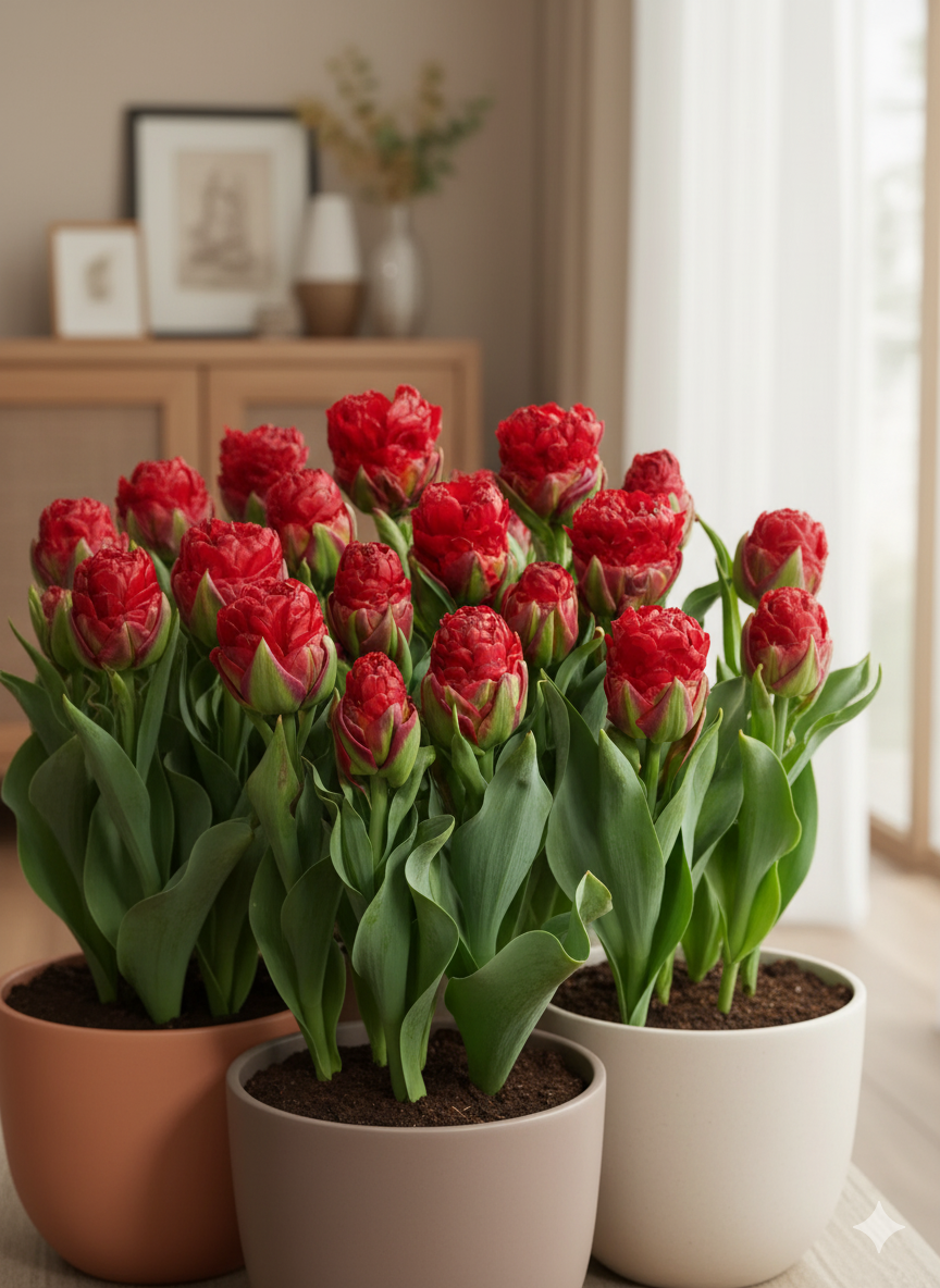 Додаткового зимового укриття кімнатні тюльпани не потребують — достатньо стабільної температури в приміщенні та легкого догляду.
