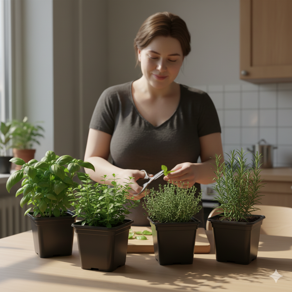 Компактний розмір дозволяє розмістити їх навіть на маленькому підвіконні, а акуратний вигляд робить горщики частиною затишного кухонного декору. До того ж усі рослини легко відновлюються після зрізання, тож кожен горщик даруватиме вам свіжу зелень і пряні аромати багато тижнів поспіль.